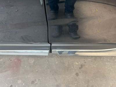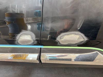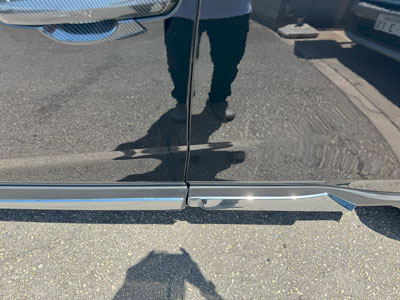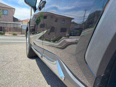 今回のご依頼は左フロントドアからリアドアにかけてのへこみ修理。