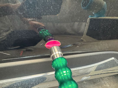 まずは板金作業ですが、今回は鉄板溶接ではなく接着剤を使った鋼板に優しい引き出し方法を採用。