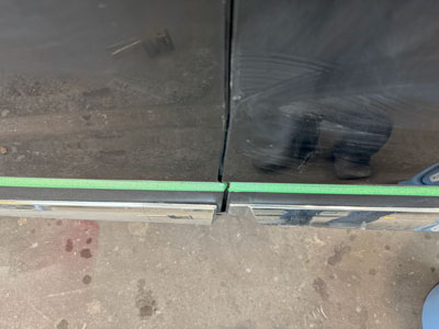 今回は上部のプレスラインを活用してぼかしを入れ、作業エリアを最小限に抑える工法を取りました。