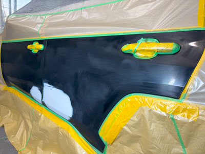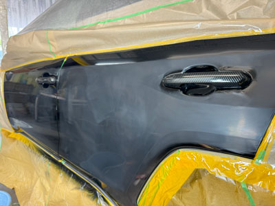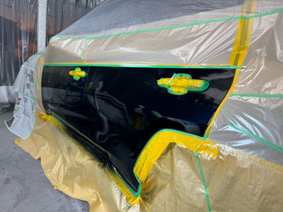 塗装エリア全体を足付け処理してマスキング施工を行います。