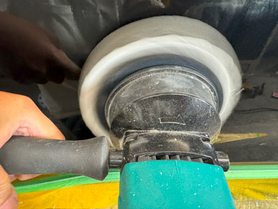 まずフェザーエッジをサンディングしてパテの密着下地を作り、