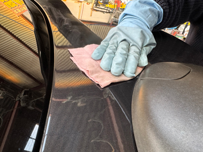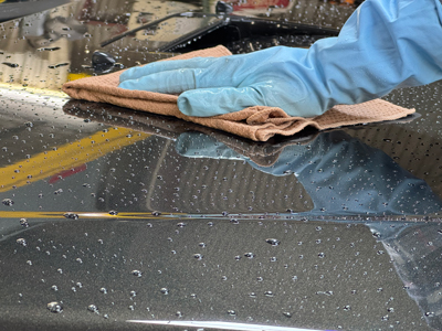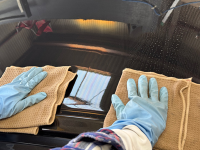 - 塗装状態を見極めながら丁寧に拭き取り