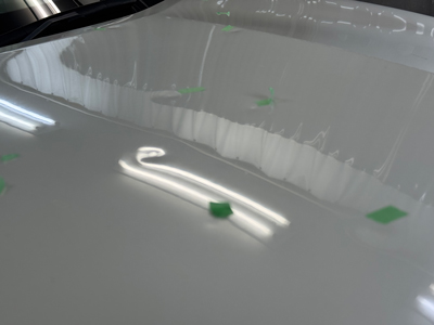 ボンネットには塗膜が割れている箇所があったため、ここだけは部分塗装で対応。