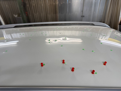 ドアやピラーにも点在しており、全体では 150カ所ほど のへこみが確認できました。