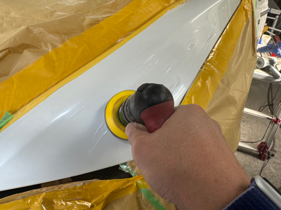 鈑金は完了しているため、サフェーサー後に小範囲で塗装していきます。