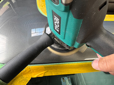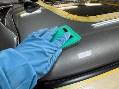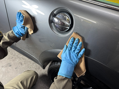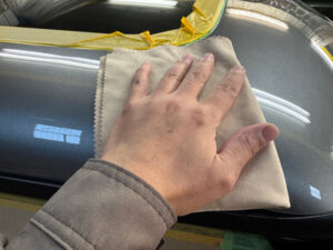 極細コンパウンドでライトポリッシュを行い、塗装面を滑らかに整えます。