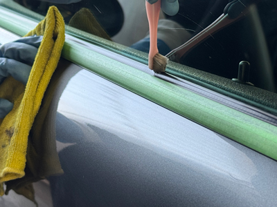 続いてモールや隙間の水垢を落とし、全体をマスキング。