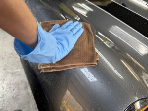 鉄粉・油膜を除去し、粘土クリーナー入りのグリッドパットで丁寧にクリーニング。