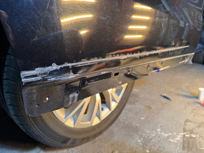 ・フロントバンパー左角のえぐれ傷