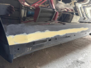 サンディング後、必要箇所にパテを盛り、