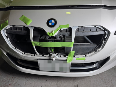 BMW 2シリーズ アクティブツアラーのフロントグリル破損修理のご紹介です。