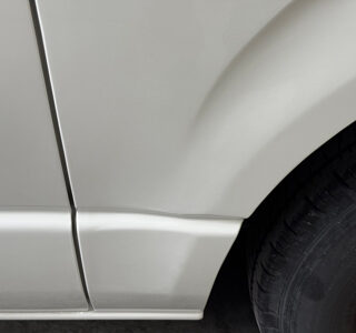 しごと場状況 デリカ・リアフェンダーのヘコミとバンパー傷を同時修復|板金塗装&塗装レスでお得に美しく!